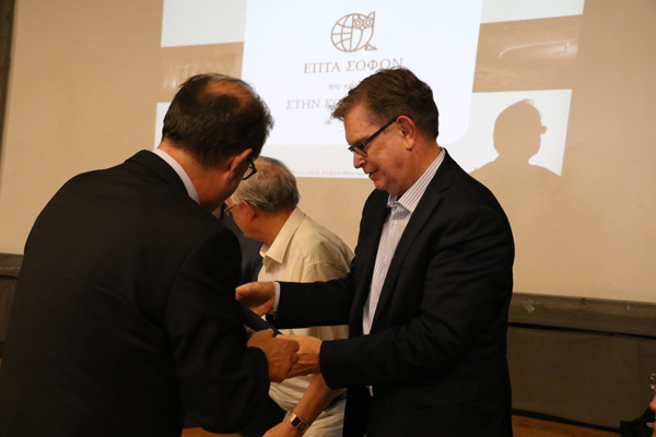 Στη χθεσινή εκδήλωση, εξ άλλου, ο δήμαρχος Καλαμάτας Παναγιώτης Νίκας επέδωσε στους 6 ξένους επιστήμονες, τιμητική πλακέτα εκ μέρους του δήμου της μεσσηνιακής πρωτεύουσας. Χαιρετισμούς στην ίδια εκδήλωση, εκτός από τον δήμαρχο, απηύθυναν, μεταξύ άλλων, ο αντιπρόεδρος του παραρτήματος Μεσσηνίας της Ενωσης Ελλήνων Φυσικών Βασίλης Δικαιουλάκος και ο διευθυντής Δευτεροβάθμιας Εκπαίδευσης Μεσσηνίας Γιάννης Πλατάρος.