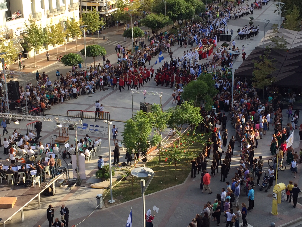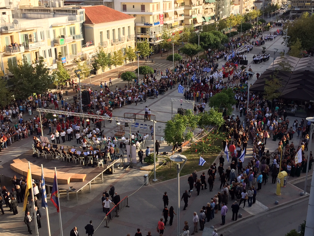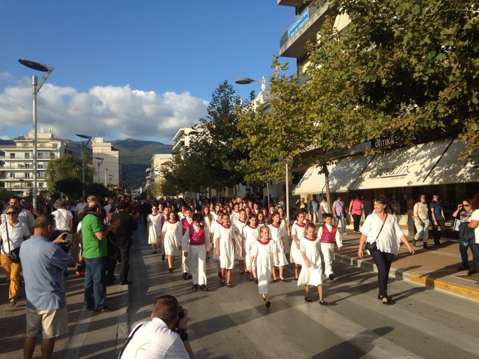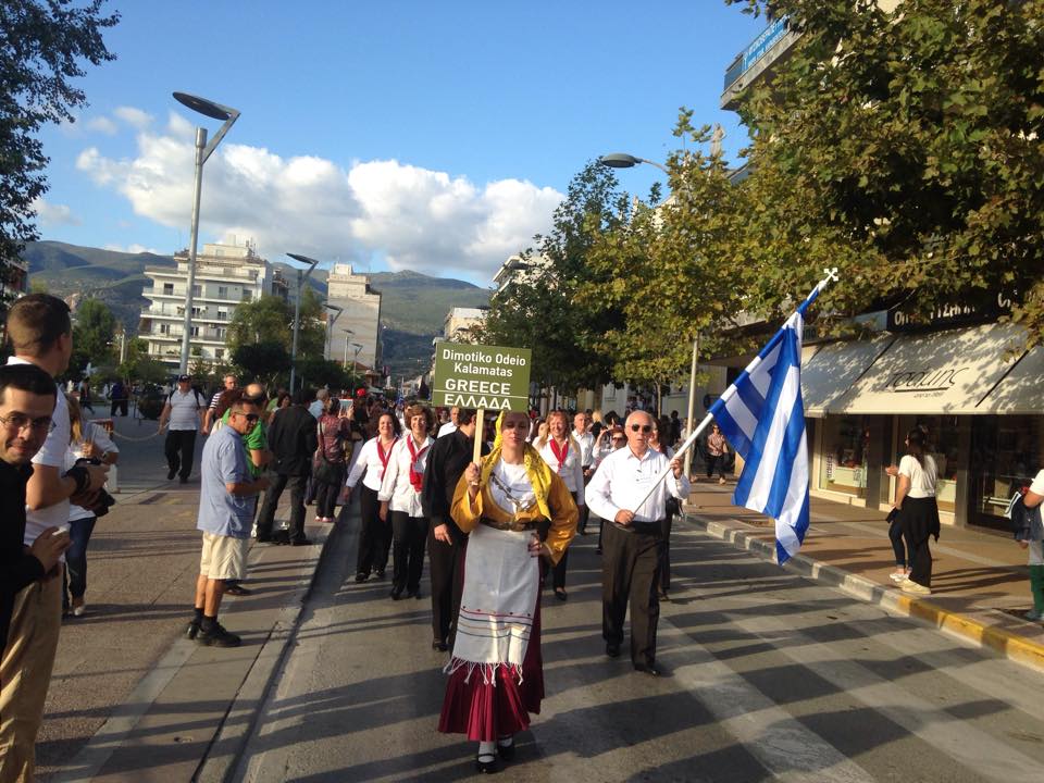 Μέλη των χορωδιών ξεκίνησαν από την πλατεία 23ης Μαρτίου και μέσω του πεζοδρόμου της Αριστομένους κατέληξαν στην κεντρική πλατεία της Καλαμάτας δίνοντας ένα εορταστικό χρώμα στην πόλη.