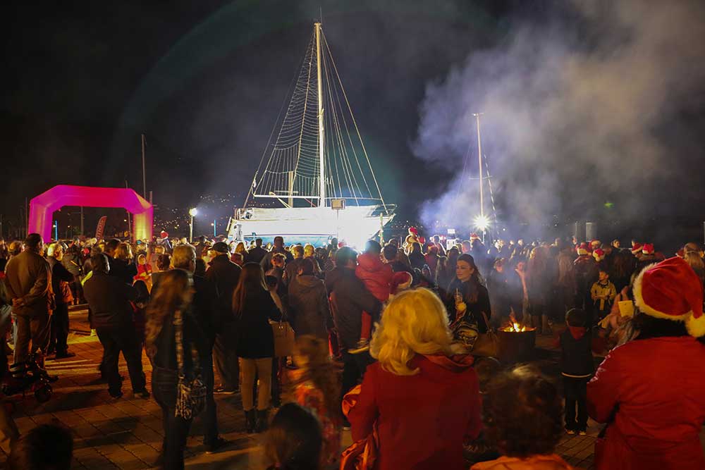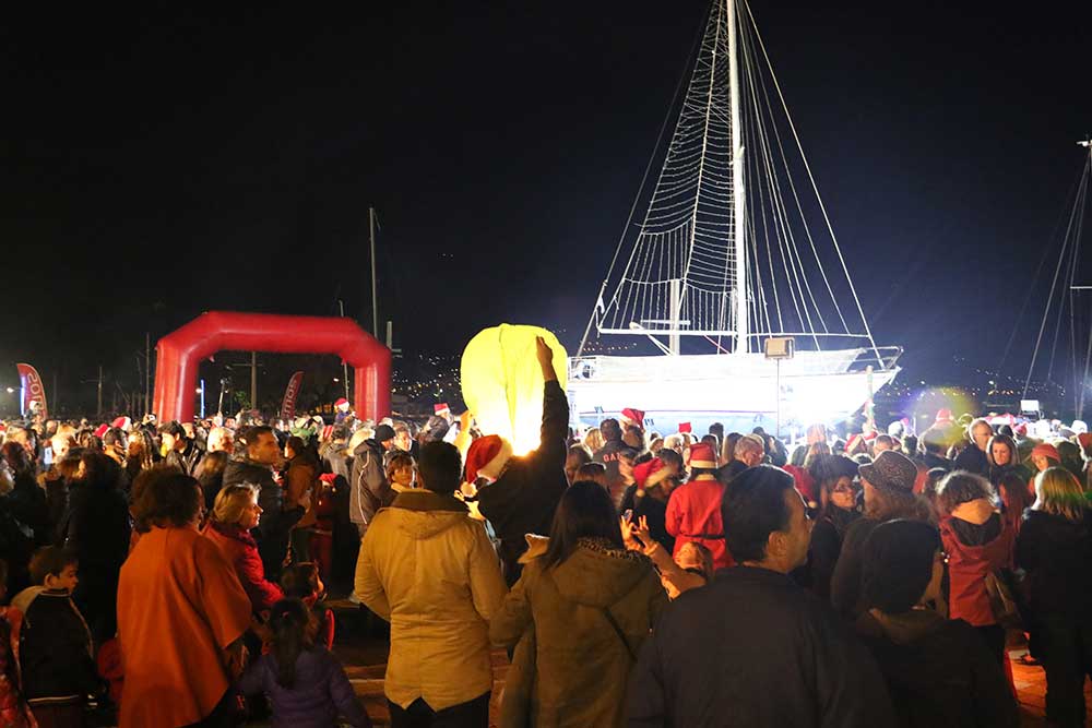 Μετά την ολοκλήρωση του 1ου Santa Run ξεκίνησαν οι χριστουγεννιάτικες εκδηλώσεις στην παραλιακή ζώνη. Μέλη του Πολιτιστικού Συλλόγου Βέργας κερνούσαν λαλαγγίδες τους παρευρισκόμενους, ενώ αερόστατα ομόρφυναν την βραδιά.