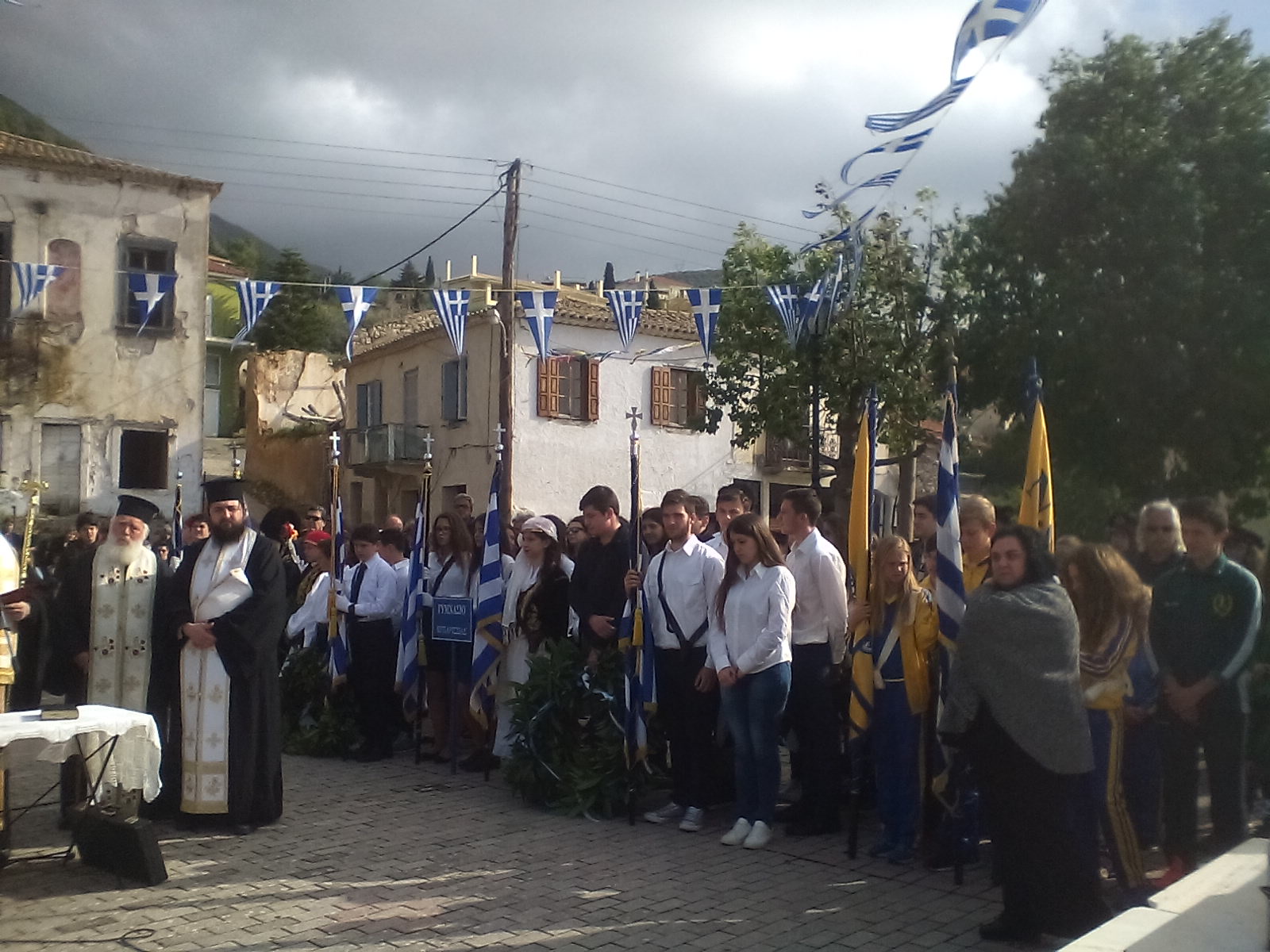 Στο ηρώο της Ανω Πόλης τελέστηκε επιμνημόσυνη δέηση από το μητροπολίτη Τριφυλίας και Ολυμπίας κ. Χρυσόστομο και ακολούθησε κατάθεση στεφανιών, από το δήμαρχο Τριφυλίας Παναγιώτη Κατσίβελα, τον αντιπεριφερειάρχη Περικλή Μαντά, το διοικητή Τροχαίας Κυπαρισσίας Βασίλη Παρασκευόπουλο, τη διοικήτρια του τοπικού Λιμενικού Τμήματος Βασιλική Καση, τον προϊστάμενο του Πυροσβεστικού Κλιμακίου Χρήστο Τρυγονοπουλο, τον αντιδήμαρχο Παναγιώτη Τσιγγανο εκ μέρους του Συλλόγου Θυμάτων Πολέμου, την πρόεδρο της ΔΚ Κυπαρισσίας Σταματία Αλεξοπούλου, μαθητές σχολείων και αθλητικούς συλλόγους.