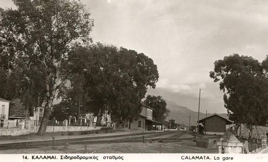 Ο σιδηροδρομικός σταθμός Καλαμάτας πριν από πολλές δεκαετίες, μάλλον την περίοδο του Μεσοπολέμου.