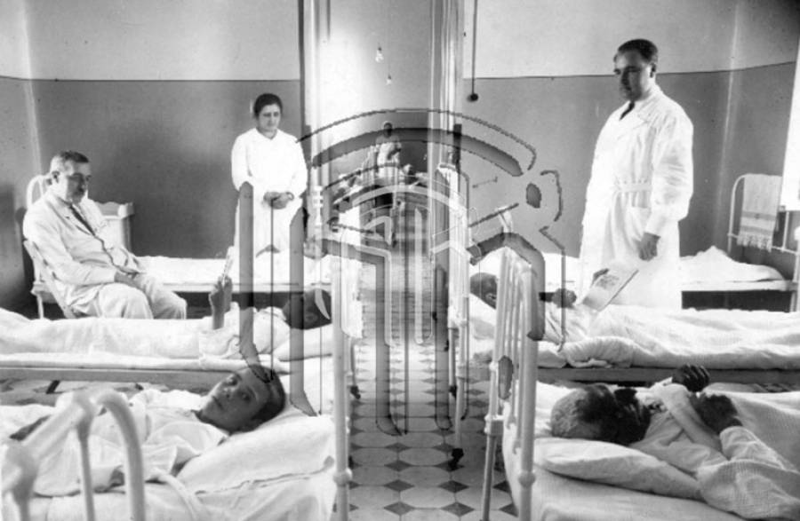 Η νοσηλεύτρια στο βάθος είναι η Αντιγόνη Αλεξανδράκη, απόγονος της οικογένειας Αλεξανδράκη. Η φωτογραφία είναι της δεκαετίας του 1940.