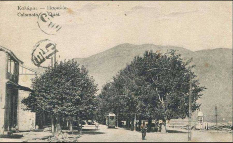 Στη μέση το τραμ που εξυπηρετούσε τη σύνδεση με την πόλη μέσα από δύο γραμμές (Αριστομένους και Φαρών). Μια άλλη "πράσινη" Καλαμάτα...