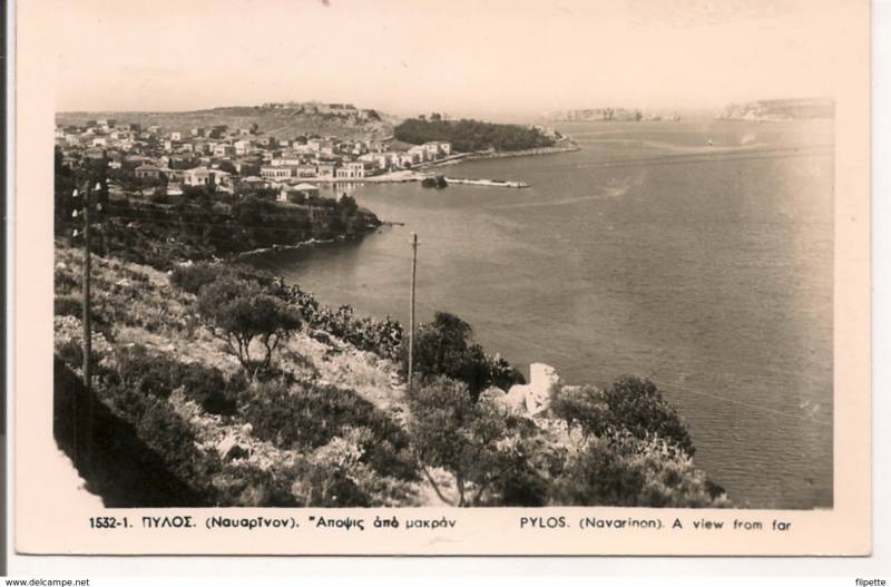 Μια μακρινή εικόνα της Πύλου την εποχή που δεν είχε φυτευτεί ακόμη ο χώρος του Νιόκαστρου. [Φωτό από το delcampe.net]