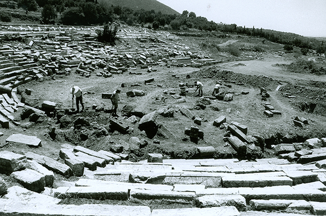 Ο απέραντος ερειπιώνας που αντίκρισα και αντικρίζω στη Μεσσήνη κατά τη διάρκεια των ανασκαφών τα τελευταία τριάντα τέσσερα χρόνια, πριν προχωρήσω στις εργασίες αναστήλωσης και ανάδειξης του μνημειακού συνόλου της πόλης (Εικ. 1-2), ήταν αποτέλεσμα της δράσης ανθρώπων των σκοτεινών αιώνων του χριστιανικού μεσαίωνα, οι οποίοι κυνηγούσαν τα μέταλλα, τους σιδερένιους συνδέσμους και το χυτό μολύβι που έδεναν μεταξύ τους τα αρχιτεκτονικά μέλη των αρχαίων κτισμάτων, για να κατασκευάσουν πρωτίστως μεταλλικά εργαλεία για την άροση της γης, την υλοτομία και τη δόμηση. Δεν αποδομούσαν συστηματικά μόνο τα αρχαία οικοδομήματα για την αρπαγή των μετάλλων, κατακερμάτιζαν και τα μαρμάρινα αγάλματα για να τα μετατρέψουν σε ασβέστη, αναγκαία ύλη για την οικοδόμηση των ταπεινών σπιτιών τους.