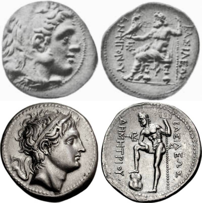 (Στη φωτογραφία: Τετράδραχμα του Αντίγονου και του Δημήτριου του Πολιορκητή)