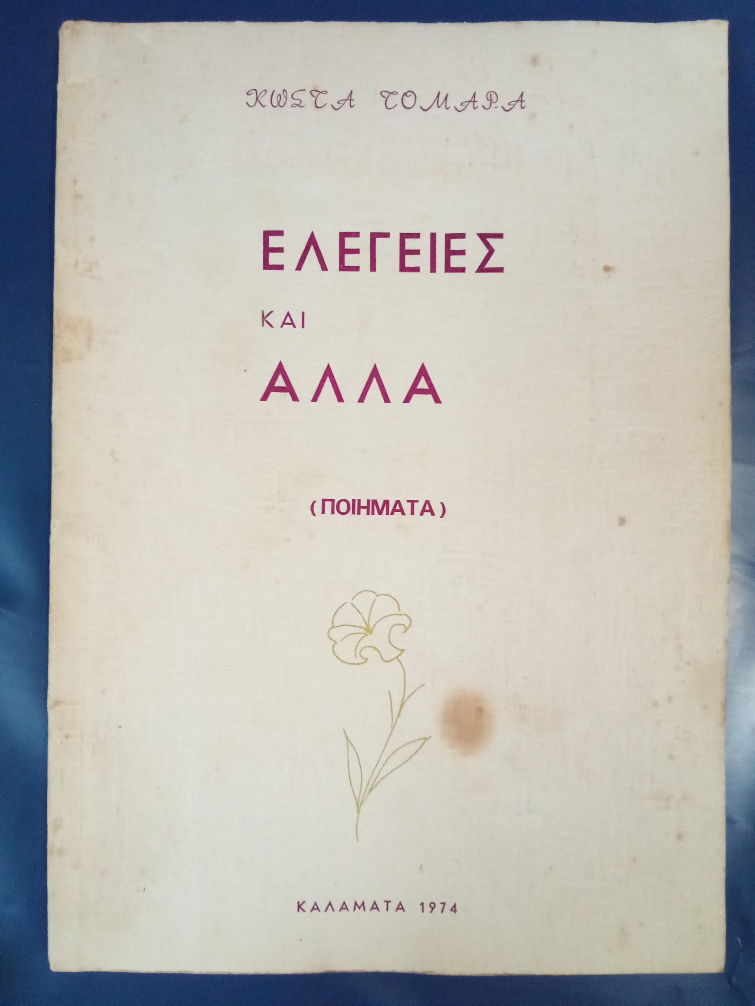 Ο αείμνηστος Κωνσταντίνος Τομαράς λοιπόν, επάξιος γόνος (και δη ο "Βενιαμίν" !) πολυμελούς αγροτικής οικογένειας από την ιδιαίτερου φυσικού κάλλους παραλιακή Φοινικούντα ("Ταβέρνα" ήταν το παλιό τοπωνύμιο !), ευαίσθητος, εσωστρεφής κι αθόρυβος, μα βαθιά φιλοσοφημένος, υπήρξε εξαιρετικός χαρακτήρας και προικισμένος μαθητής, αλλά και ταλαντούχος συνάμα, με μιαν εμπνευσμένη μάλιστα "ποιητική φλέβα" να τον διατρέχει! Τον Νοέμβριο τού 1974 (στις αρχές δηλαδή τής ΣΤ ' τάξης) είχε εκδοθεί στην Καλαμάτα η εξαίρετη ποιητική του συλλογή "Ελεγείες και άλλα (ποιήματα)" (!), την οποία άπαντες οι φίλοι συμμαθητές μελετούσαμε έκτοτε με περηφάνια - θεωρώντας την ως υποδειγματικό λογοτέχνημα ! -, επαιρόμενοι μάλιστα που το "Κλασικό" διέθετε στους κόλπους του έναν τέτοιον αισθαντικό και γλωσσοπλάστη ποιητή!