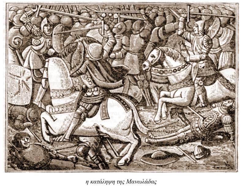Όμως ένα σοβαρότατο περιστατικό που συνέβη το 1311, επηρέασε δραματικά τις τύχες της φραγκοκρατίας στην Ελλάδα. Τότε οι μισθοφόροι της καταλανικής τυχοδιωκτικής εταιρείας, συγκρούστηκαν με τους Φράγκους του δουκάτου της Αθήνας, που για βοήθεια είχαν καλέσει «φραγκική πανστρατιά». Σε αυτή τη σύγκρουση, στην οπόια επικεφαλής των Φράγκων ήταν ο Walter comte de Lece, διάδοχος του Guy II de la Roche, πήρε μέρος και η αφρόκρεμα των Φράγκων ιπποτών του πριγκιπάτου. Στη σύγκρουση πήραν μέρος, ως σύμμαχοι των Καταλανών και Τούρκοι, μερικοί από τους οποίους είχαν βαπτισθεί χριστιανοί. Η μάχη έγινε στον βοιωτικό Κηφισό, στην Κωπαΐδα κοντά στον αρχαίο Ορχομενό. Εκεί οι έφιπποι σιδερόφραχτοι Φράγκοι έπεσαν ανυποψίαστοι στο τέλμα και αποδεκατίστηκαν.