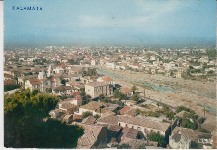 Μια όψη της Καλαμάτας στα τέλη της δεκαετίας του 1960. Η φωτογραφία έχει ληφθεί από το Κάστρο και απαθανατίζει το νοτιοδυτικό τμήμα από εκείνο το σημείο.