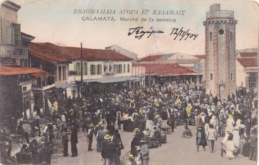 Μια εικόνα της Πάνω Πλατείας (τα σημερινά Παπλωματάδικα που έφταναν μέχρι την ανατολική πλευρά της οδού Υπαπαντής που ήταν ακόμη αδιάνοικτη) σε καρτ ποστάλ των αρχών του 20ού αιώνα (και σίγουρα πριν το 1904 που αναγράφεται).