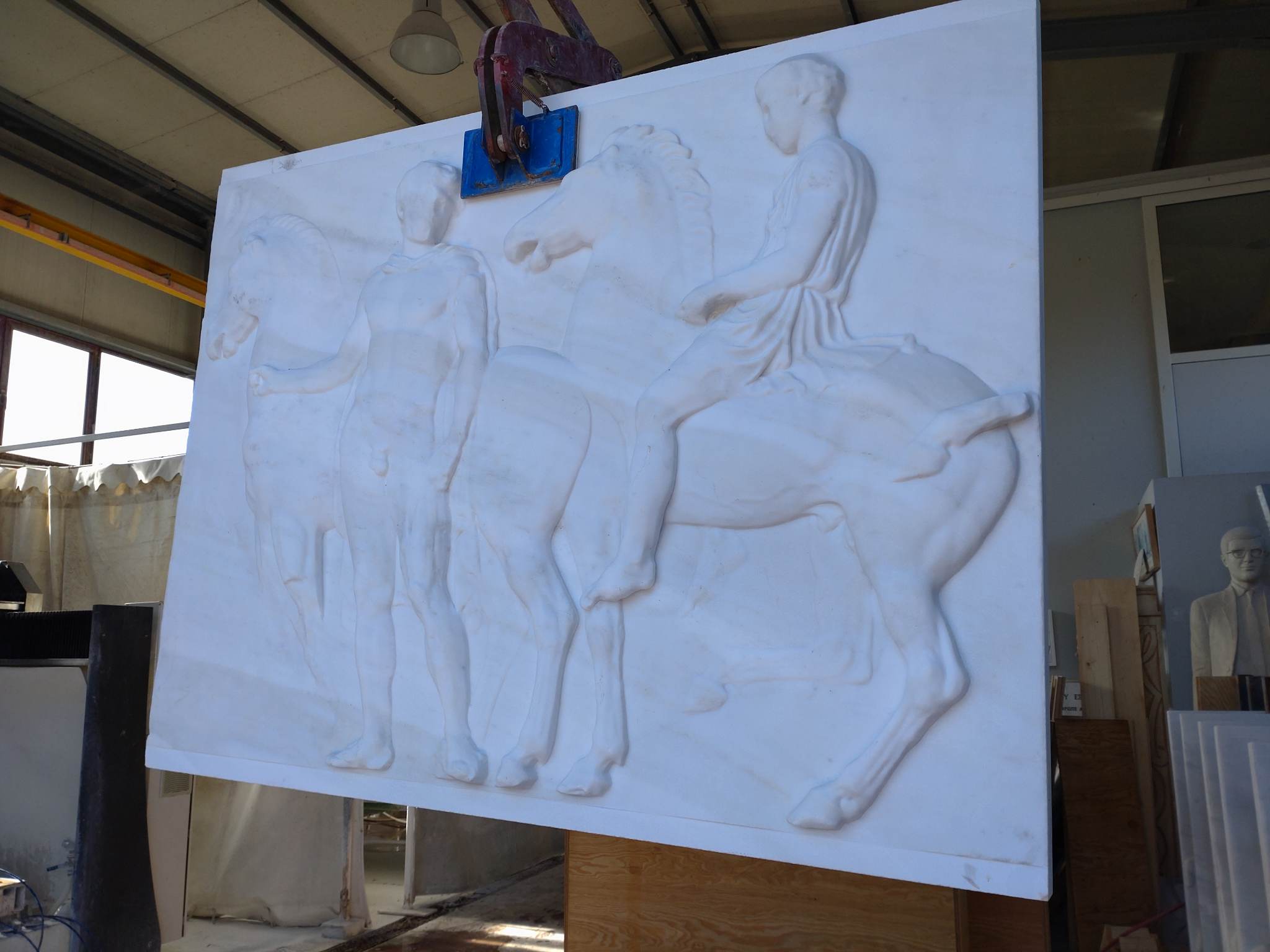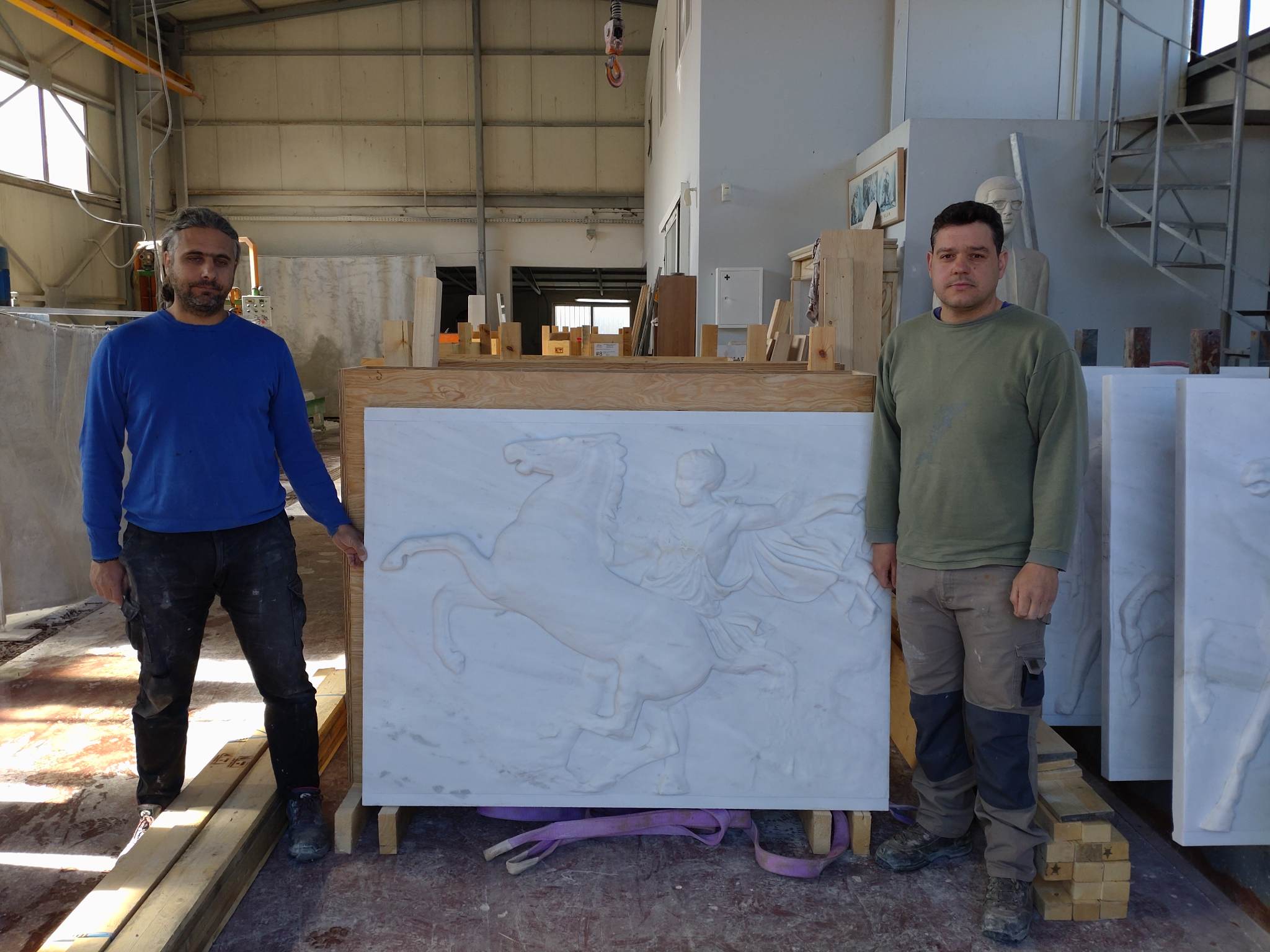 Στις αρχές του έτους η “Ε” είχε βρεθεί στο εργαστήριο γλυπτικής του Κώστα Δούση, εκεί που μπήκαν οι βάσεις ώστε η επιστροφή των Μαρμάρων του Παρθενώνα να μη μένει στα λόγια, αλλά να τονιστεί με πράξεις. Το έργο του Μεσσήνιου γλύπτη και του μαρμαροτεχνίτη Παναγιώτη Βασιλάκη σμιλεύθηκε στη Θουρία και μεταφέρθηκε στην Αυστραλία με κοντέινερ. Ζυγίζει 6 τόνους και έχει μήκος 24 μέτρων.