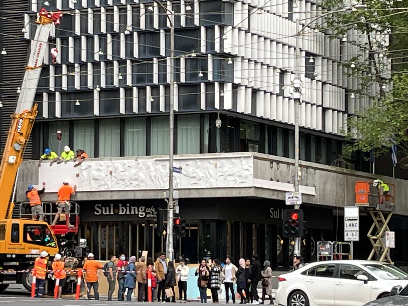 Τον περασμένο Φεβρουάριο, ο κ. Δούσης είχε δηλώσει στην κάμερα της “Ε” πως το διάστημα που χρειάστηκε για την εκτέλεση των μαρμάρων ήταν ένας χρόνος. «Ουσιαστικά η αδειοδότηση του υπουργείου ενημέρωνε πως έπρεπε να πάρουμε τα γύψινα αντίγραφα για να εκτελέσουμε στη συνέχεια σε μαρμάρινα, αφού είχε προηγηθεί η έγκριση από το Κεντρικό Αρχαιολογικό Συμβούλιο» είχε γνωστοποιήσει. Στο ίδιο ρεπορτάζ, ο Παναγιώτης Βασιλάκης είχε προσθέσει πως η Ελληνική Κοινότητα της Μελβούρνης αγωνίζεται συνεχώς στο κομμάτι του πολιτισμού, έχοντας περάσει σε αυστραλέζικα σχολεία και πανεπιστήμια την ελληνική γλώσσα, χαρακτηρίζοντάς την ως την πιο ενεργή ελληνική κοινότητα στον κόσμο.