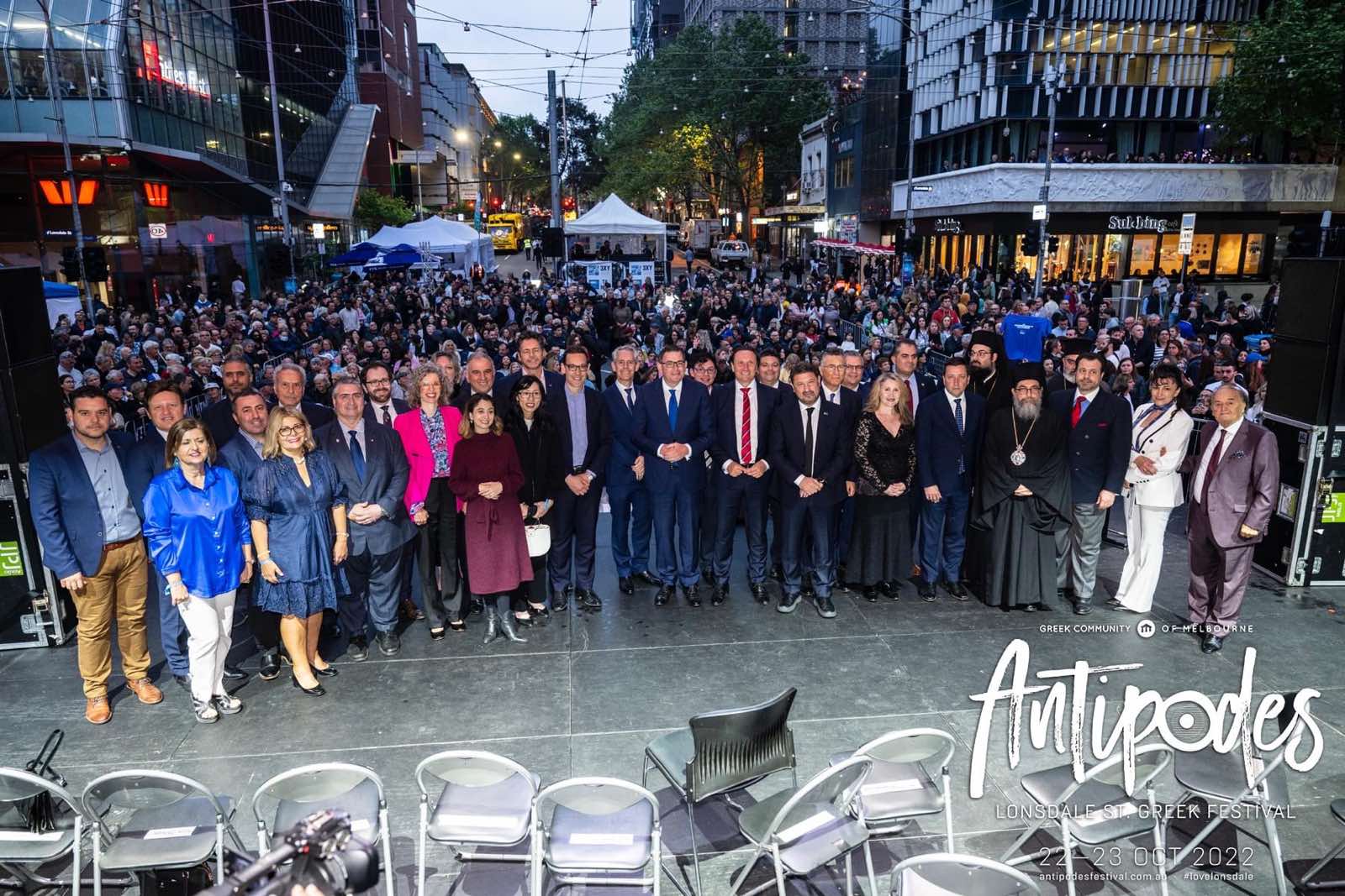 Στην εκδήλωση έδωσαν το "παρών" μεταξύ άλλων ο υφυπουργός Εθνικής Αμυνας Νίκος Χαρδαλιάς, ο δήμαρχος Καλαμάτας Θανάσης Βασιλόπουλος, ο πρωθυπουργός της Πολιτείας της Βικτώριας Daniel Andrews, ο πρόεδρος της Ελληνικής Κοινότητας Μελβούρνης Βασίλης Παπαστεργιάδης, ο αντιπρόεδρος της Ελληνικής Κοινότητας Μιχάλης Καραμήτος, ο υπουργός Δημιουργικών Βιομηχανιών της Βικτώριας Στιβ Δημόπουλος, ο επίσκοπος Κερασούντος Ευμένιος, ο επίσκοπος Σωζοπόλεως Κυριακός, καθώς και ο γενικός πρόξενος της Ελλάδας στη Μελβούρνη Εμμανουήλ Κακαβελάκης.