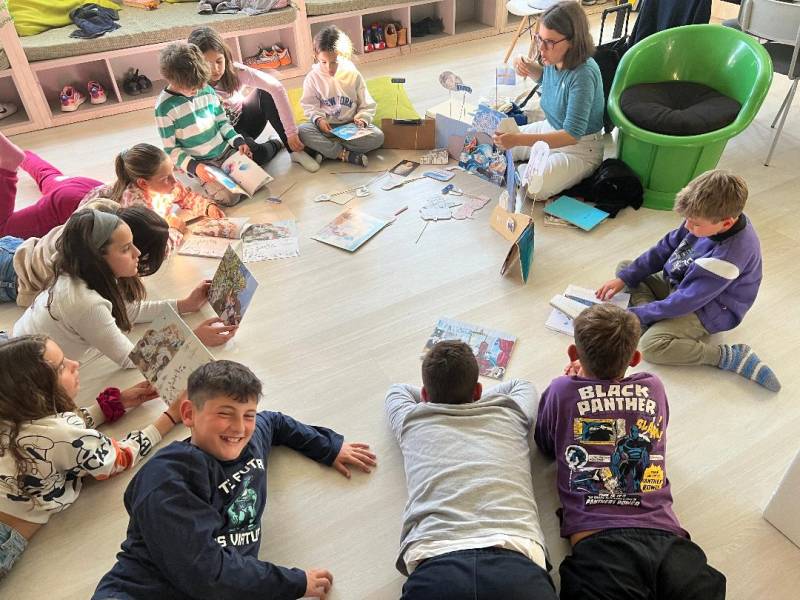 Η συγγραφέας-εικονογράφος υλοποίησε συμμετοχικές, δημιουργικές δράσεις με παιδιά και ενήλικες, δίνοντάς τους τη δυνατότητα να γνωρίσουν άγνωστες πλευρές του εθνικού μας ποιητή. H σεισμική δόνηση της Παρασκευής 29/3 δεν επέτρεψε στους μαθητές και τις μαθήτριες της Γ’ Γυμνασίου Φιλιατρών να επισκεφθούν τη βιβλιοθήκη όμως οι υπόλοιπες δράσεις έγιναν κανονικά.