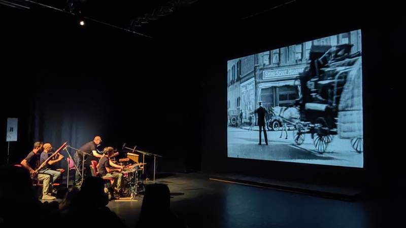 Στο Μέγαρο Χορού Καλαμάτας, προχθές Τετάρτη πραγματοποιήθηκε με επιτυχία μια δράση του Φεστιβάλ, όπου οι παρευρισκόμενοι παρακολούθησαν μια ταινία βωβού κινηματογράφου με ζωντανή μουσική από τους «MOVING BAND».
