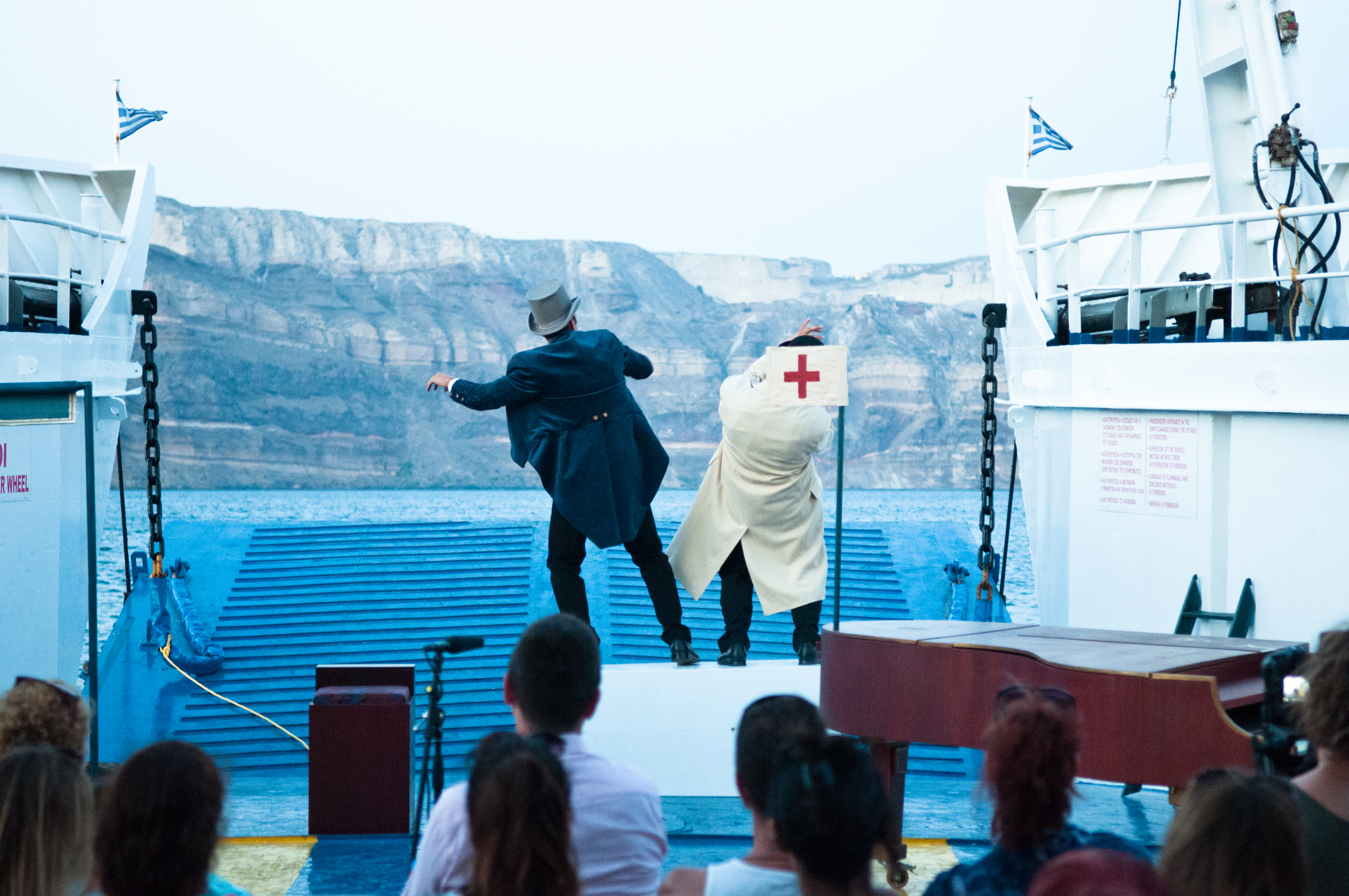 Με αφορμή και αιτία την ιστορία του 1900, γεννιέται η ιδέα μιας παράστασης που θα κατέβει από το θεατρικό καράβι της Αθήνας και θα ταξιδέψει ανάμεσα στη στεριά και τη θάλασσα, όπου υπάρχουν θεατές. Και εάν δεν υπάρχουν θα προσπαθήσει να δημιουργήσει τη συνθήκη να υπάρξουν. Στις βαλίτσες της παράστασης, μαζί με τα λόγια του έργου υπάρχει γραμμένη στο χέρι η φράση: “να ταξιδέψουμε σε τόπους όπου υπάρχει ανάγκη για μία πολιτιστική δυνατότητα”. Οι πρώτες παραστάσεις γίνονται σε ένα αγκυροβολημένο καράβι, εν πλω και σε ένα καρνάγιο. Το ταξίδι θα συνέχιζε για 7 ολόκληρα χρόνια.