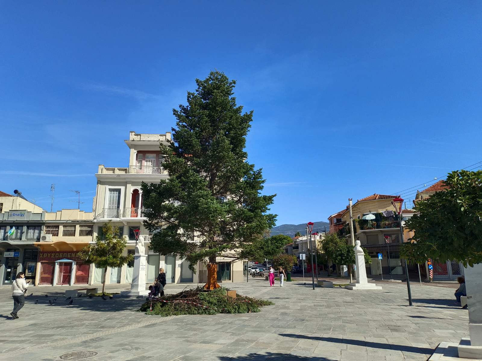 Η μεταφορά του είχε προγραμματιστεί νωρίς το πρωί, ωστόσο λόγω μη τήρησης των κυκλοφοριακών ρυθμίσεων, το δέντρο έφτασε στην πλατεία λίγο μετά τις 11. Μάλιστα, με την τοποθέτησή του, θαμώνες από επιχειρήσεις εστίασης χειροκρότησαν την προσπάθεια αλλά και το αποτέλεσμα που αντίκρισαν.