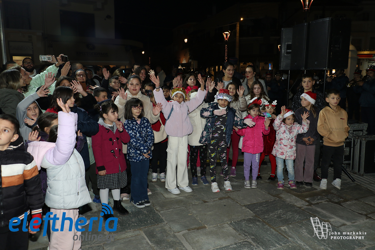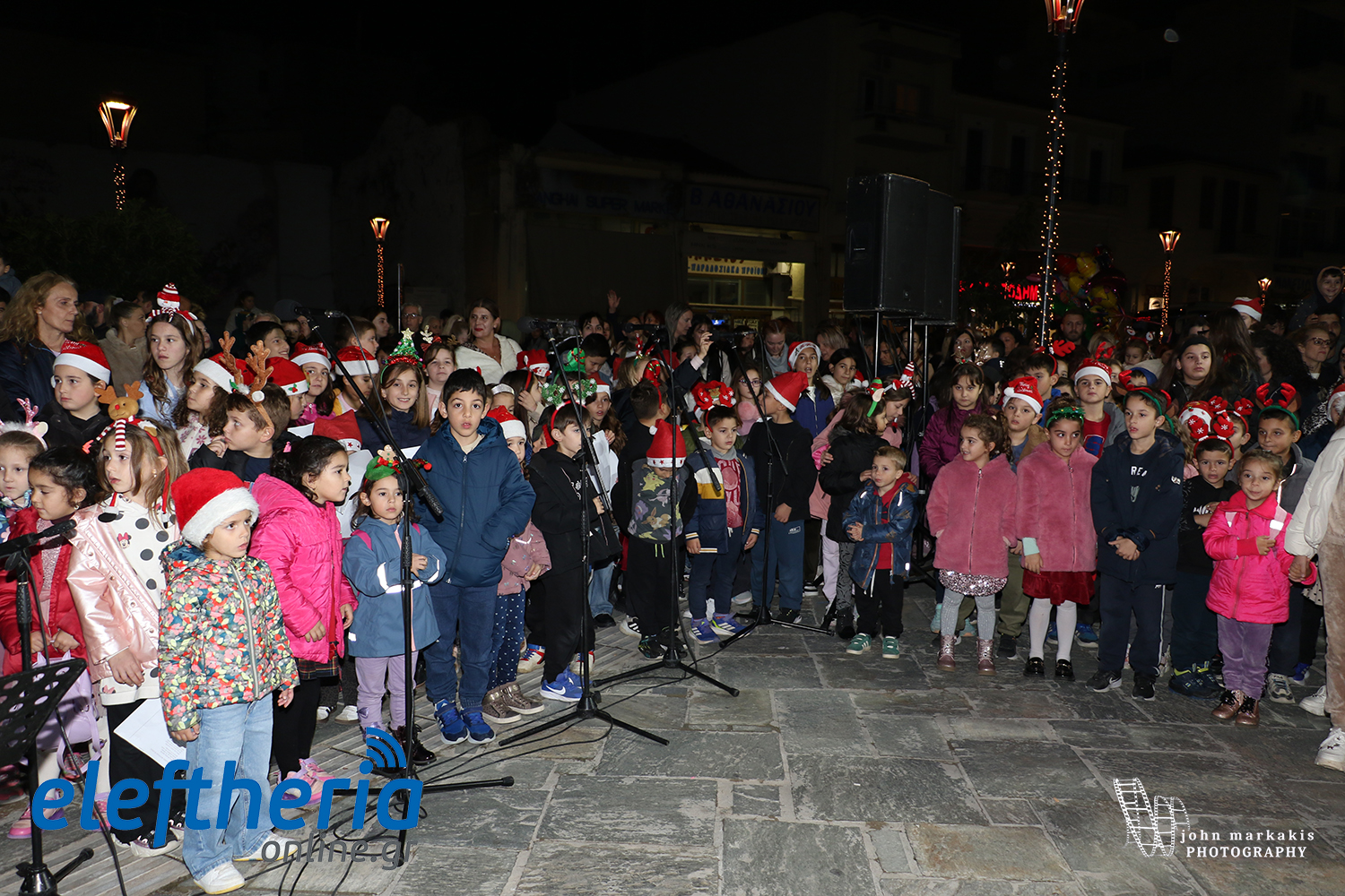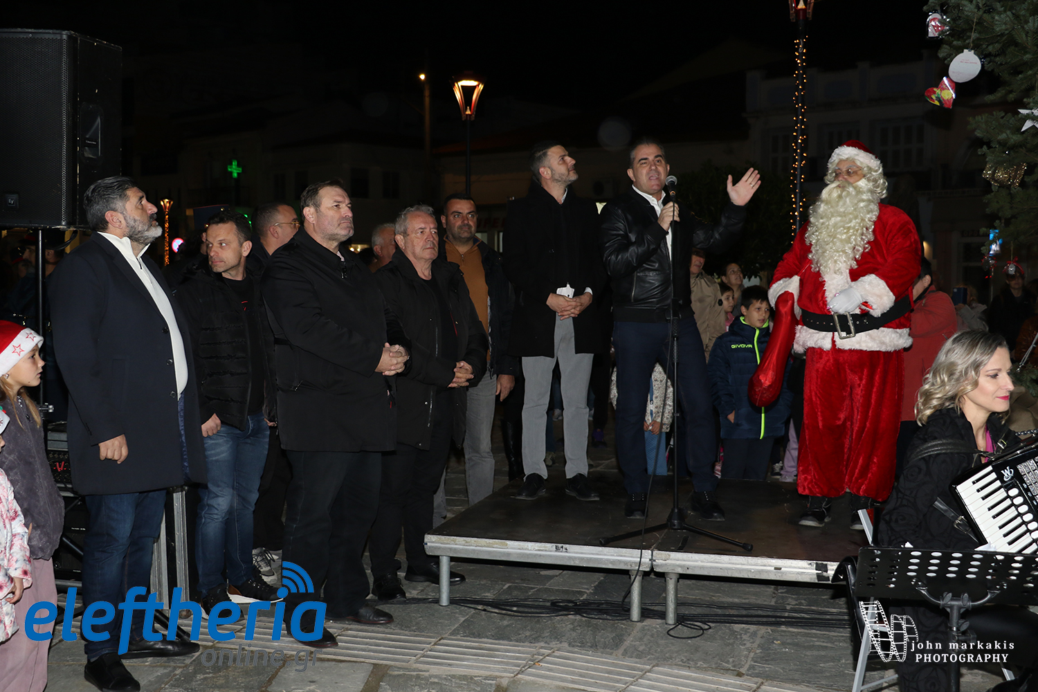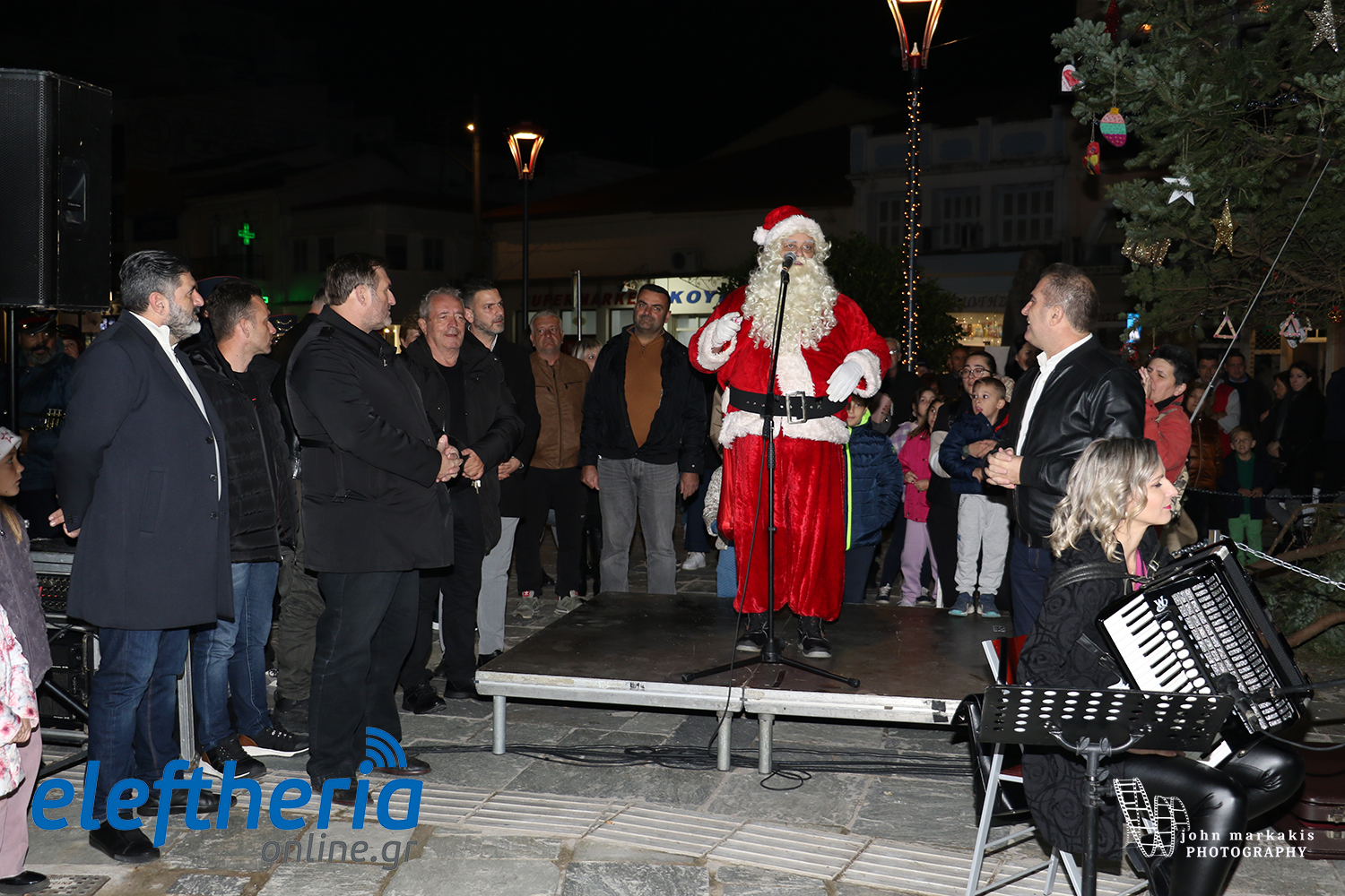 Η φωταγώγηση του νέου φυσικού Χριστουγεννιάτικου δέντρου ύψους 10 μέτρων στην πλατεία 23ης Μαρτίου ήρθε ως συνέχεια των εκδηλώσεων στην Κεντρική Αγορά, στην κεντρική πλατεία και στο λιμάνι, γεμίζοντας την περιοχή με χαμόγελα, μουσική και γιορτινή διάθεση.