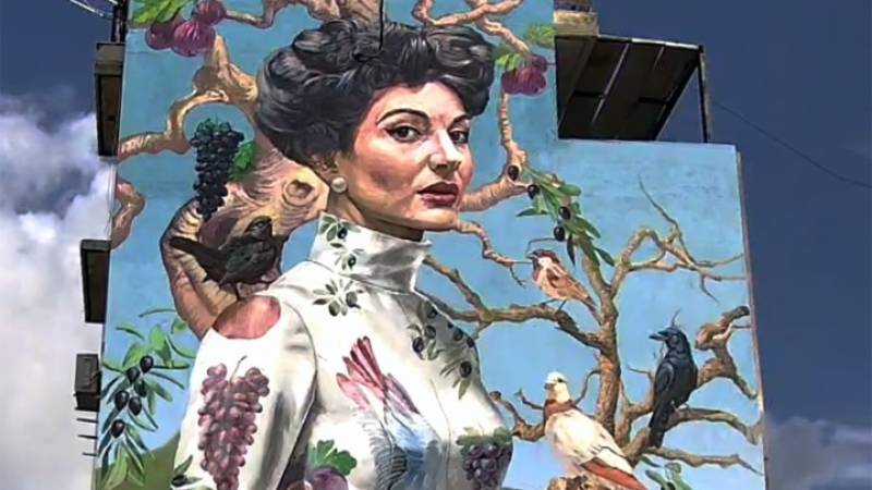 Την ενσαρκώνει. Πρόκειται για την τοιχογραφία με τίτλο «Καλαμάτα» του Κλεομένη Κωστόπουλου (KLE), η οποία δεν είναι απλώς ένα εντυπωσιακό έργο street art.