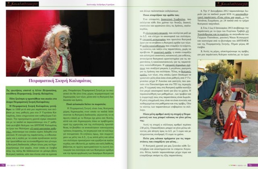 Αφιέρωμα στην ιστορία και την δραστηριότητα της Πειραματικη Σκηνή Καλαμάτας φιλοξένησε προσφάτως στο τέυχος 11 το καλλιτεχνικό περιοδικό "Echomove" με την πρόεδρο Λέττα Πετρουλάκη να απαντάει σε μία σειρά ερωτήσεων.