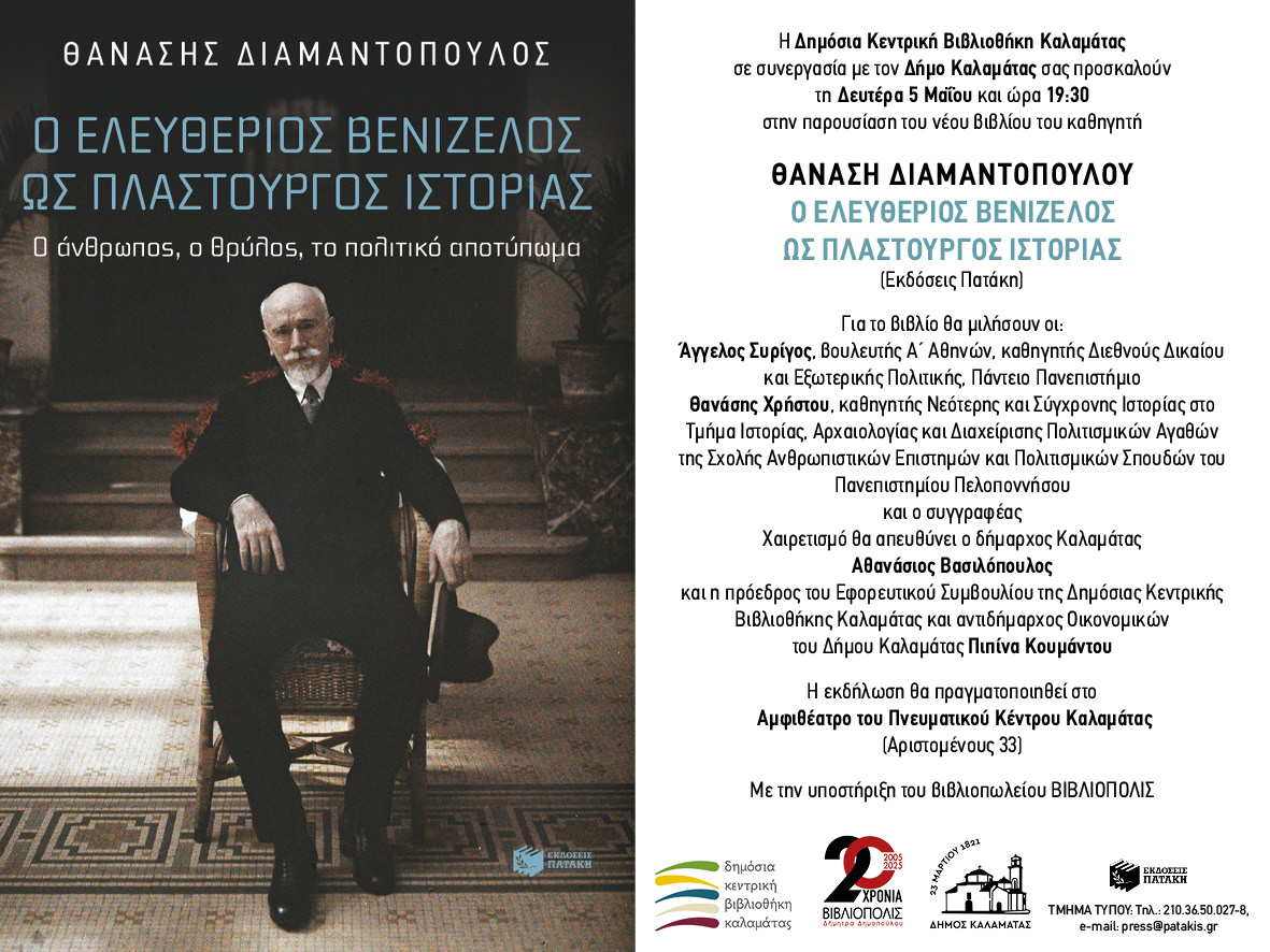 Για το βιβλίο θα μιλήσει ο Άγγελος Συρίγος, Βουλευτής Α΄ Αθηνών, Καθηγητής Διεθνούς Δικαίου και Εξωτερικής Πολιτικής στο Πάντειο Πανεπιστήμιο, ο Θανάσης Χρήστου, Καθηγητής Νεότερης και Σύγχρονης Ιστορίας στο Τμήμα Ιστορίας, Αρχαιολογίας και Διαχείρισης Πολιτισμικών Αγαθών της Σχολής Ανθρωπιστικών Επιστημών και Πολιτισμικών Σπουδών του Πανεπιστημίου Πελοποννήσου και ο συγγραφέας. Χαιρετισμό θα απευθύνει ο Δήμαρχος Καλαμάτας Θανάσης Βασιλόπουλος, ο Αντιπεριφερειάρχης Μεσσηνίας, Στάθης Αναστασόπουλος και η Πρόεδρος του Εφορευτικού Συμβουλίου της Δημόσιας Κεντρικής Βιβλιοθήκης Καλαμάτας και Αντιδήμαρχος Οικονομικών του Δήμου Καλαμάτας Πιπίνα Κουμάντου. Η εκδήλωση θα πραγματοποιηθεί από τη Δημόσια Κεντρική Βιβλιοθήκη και το Δήμο Καλαμάτας, με την υποστήριξη του βιβλιοπωλείου Βιβλιόπολις και των Εκδόσεων Πατάκη.