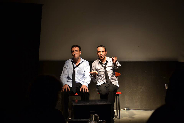 - Στο έργο υπάρχουν οκτώ χαρακτήρες. Τους υποδύεστε μόνο εσείς οι δυο;