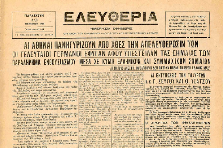 Ολόκληρη η υπόλοιπη μέρα και η νύχτα ήταν ένα πανηγύρι για τους Αθηναίους. Ένα τραγικό πανηγύρι και για πολλούς τελευταίο. Σε λιγότερο από δύο μήνες η Αθήνα θα γνώριζε το χειρότερο αιματοκύλισμα της νεότερης ιστορίας της. Tα Δεκεμβριανά.