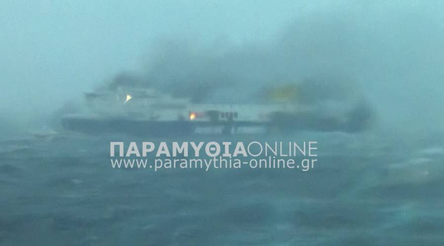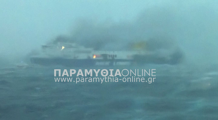 Δειτε φωτογραφία από το φλεγόμενο Norman Atlantic, τραβηγμένη από το εσωτερικό του πλοίου της γραμμής Αγκόνα Ηγουμενίτσα που έχει σταματήσει κοντά στο Norman Atlantic.