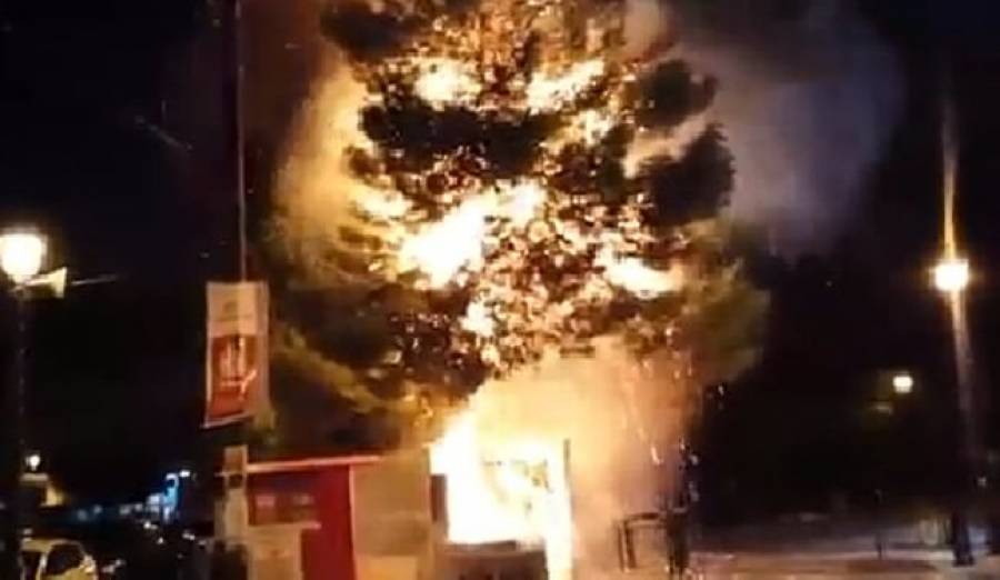 Άγνωστοι έβαλαν φωτιά στο περίπτερο του Κινήματος (το κόμμα του Γιώργου Παπανδρέου). Η φωτιά επεκτάθηκε και σε παρακείμενο δέντρο.
