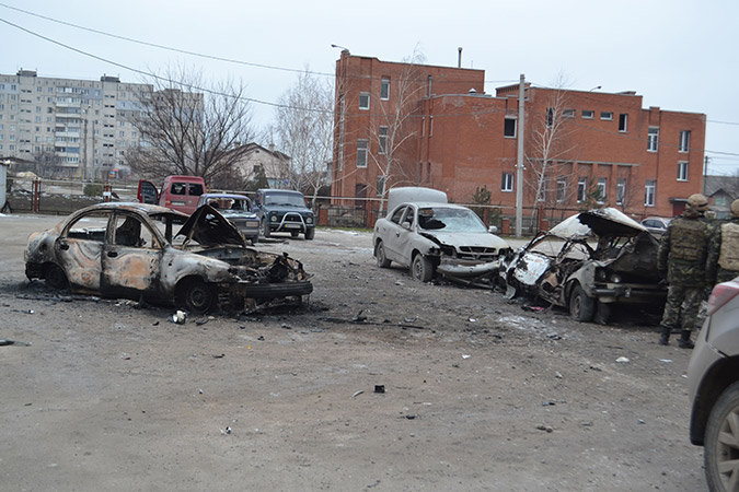 Σε ένα άλλο βίντεο, ένας οδηγός καταγράφει εικόνες από τη βομβαρδισμένη πόλη.