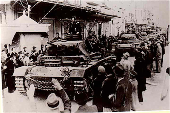 Οι κάτοικοι της Θεσσαλονίκης πάγωσαν στις οκτώ το πρωί της 9ης Απριλίου του 1941, όταν είδαν τους Γερμανούς κατακτητές να εισβάλλουν στην πόλη τους. Με τανκς, άρματα, αεροπλάνα και πλήθος στρατού, έκαναν επίδειξη δύναμης.