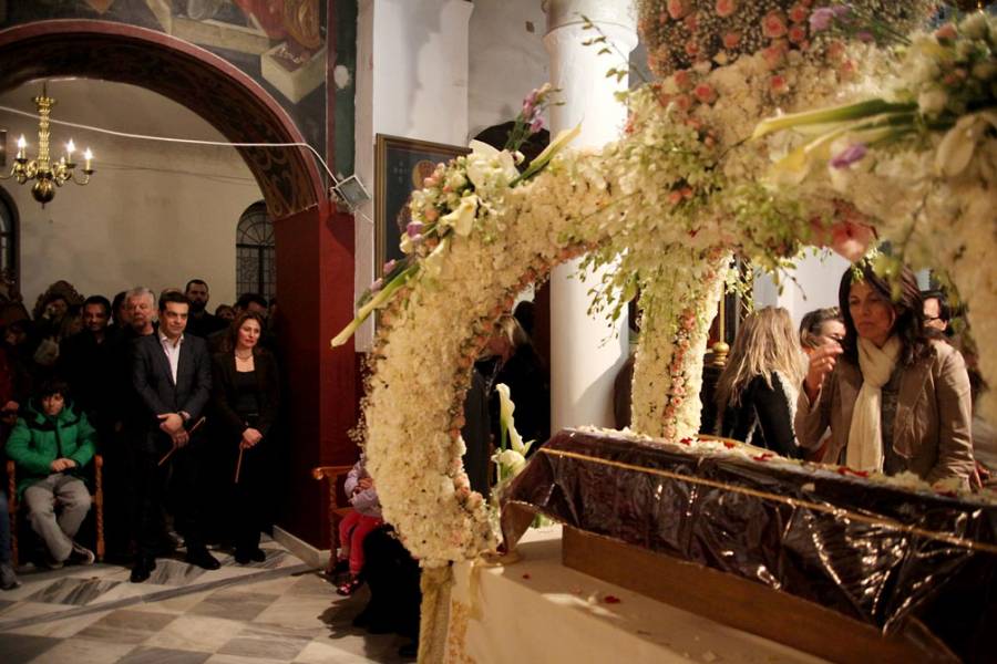 Μετά το τέλος της Ακολουθίας, ο κ. Τσίπρας παρακολούθησε την περιφορά του Επιταφίου και αντάλλαξε ευχές με τους πιστούς που έσπευσαν να τον χαιρετίσουν.