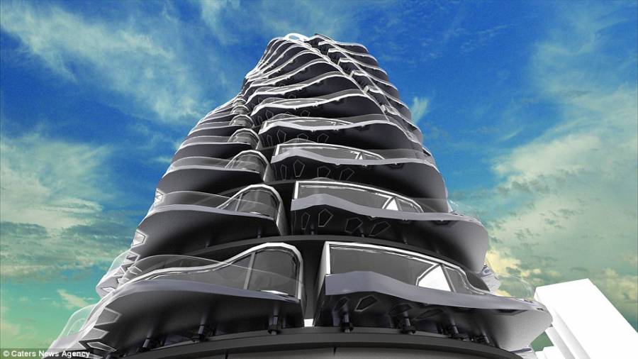 Το αποτέλεσμα ήταν ένα κτίριο όπου κάθε μονάδα κινείται προς τα κάτω, όπως ένα roller-coaster που αναδιπλώνεται γύρω από 27 ορόφους, προσφέροντας μια συνεχώς μεταβαλλόμενη θέα 360 μοιρών γύρω από την πόλη.