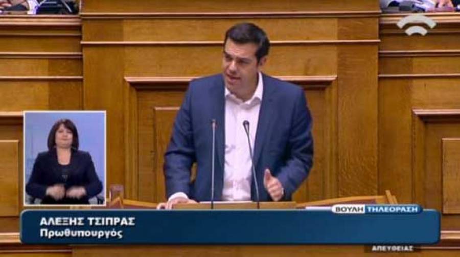 "Σας καλώ να πείτε αν αποδέχεστε ή απορρίπτετε την προτεινόμενη συμφωνία" είπε ο Πρωθυπουργός Αλέξης Τσίπρας στην ομιλία του βουλή...