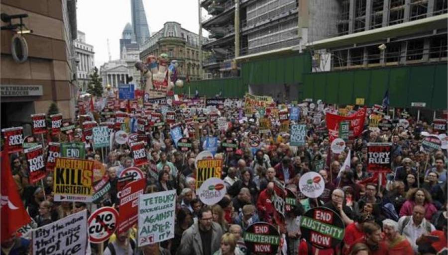 Γράφτηκε από την ΕΛΕΥΘΕΡΙΑ OnlineΠολλές χιλιάδες διαδηλωτές πραγματοποίησαν πορεία το Σάββατο στους δρόμους του Λονδίνου διαμαρτυρόμενοι για την πολιτική λιτότητας που ακολουθεί η συντηρητική κυβέρνηση του πρωθυπουργού Ντέιβιντ Κάμερον.