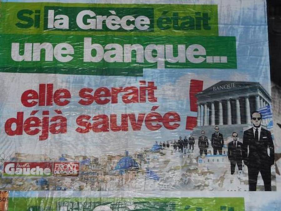 Αφίσες στο Παρίσι: "Αν η Ελλάδα ήταν τράπεζα θα είχε σωθεί" Αφίσες του "Αριστερού Μετώπου", του Ζαν Λυκ Μελανσό. enallaktikos.gr
