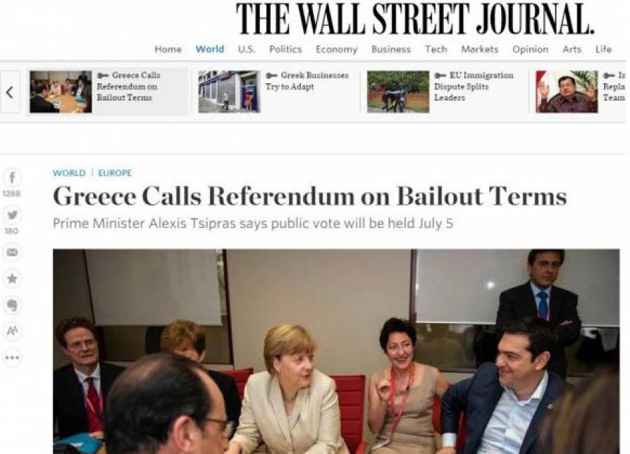 Δεν είναι σαφές, σημειώνει η WSJ, αν οι τράπεζες θα καταφέρουν να μείνουν ανοικτές μέχρι την Κυριακή που θα διεξαχθεί το δημοψήφισμα ή η χώρα θα αναγκαστεί να επιβάλει κεφαλαιακούς ελέγχους.