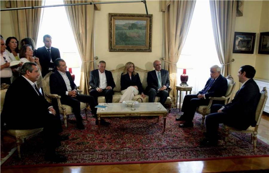 Άλλωστε αναμένονται με μεγάλο ενδιαφέρον τα όσα θα ειπωθούν πίσω από τις κλειστές πύλες του Προεδρικού Μεγάρου καθώς τόσο ο επικεφαλής του Ποταμιού Σταύρος Θεοδωράκης όσο και η πρόεδρος του ΠΑΣΟΚ  Φώφη Γεννηματά έχουν ζητήσει τη σύγκληση συμβουλίου Πολιτικών Αρχηγών υπό τον Πρόεδρο της Δημοκρατίας, ώστε να ληφθούν άμεσα αποφάσεις για την πορεία της χώρας το επόμενο διάστημα.