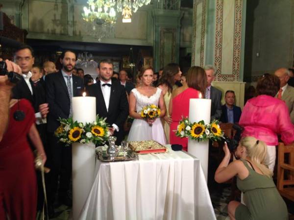 Ο γάμος του 36χρονου με την αγαπημένη συνάδελφό του Τζίνα Κόφφα τελέστηκε το απόγευμα του Σαββάτου στο γραφικό εκκλησάκι της Ευαγγελιστρίας στη Βέργα, από το μητροπολίτη Μεσσηνίας Χρυσόστομο, με κουμπάρο τον επίσης δικηγόρο Γιώργο Σπυράκη.