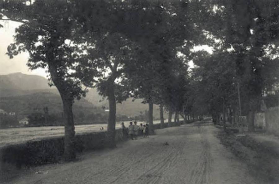 Πρόκειται για τη σημερινή οδό Σπάρτης, η οποία τότε ήταν φυτεμένη αρχικά με πεύκα και στη συνέχεια με πλατάνια. Διακρίνεται μια ομάδα παιδιών και ο μαντρότοιχος της (διευθετημένης) κοίτης του Νέδοντα.
