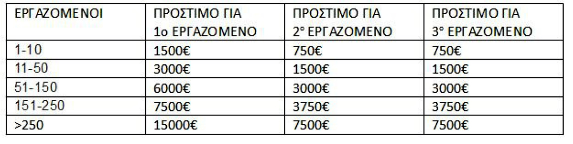 - 3.000 ευρώ πρόστιμο εάν γίνει πρόσληψη με ετήσια σύμβαση.