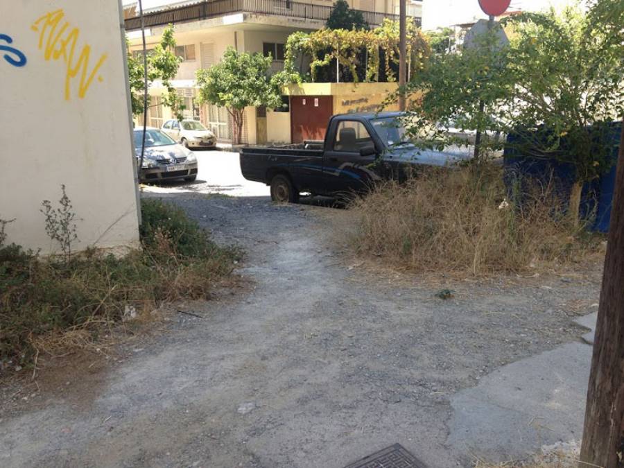 Ακόμα μια «ειδυλλιακή» γωνιά, με αυξημένο συντελεστή δυσκολίας και επικινδυνότητας για τους πεζούς... μόλις δυο βήματα από την κεντρική πλατεία της Καλαμάτας: στη γωνία Βύρωνος και Καίσαρη.