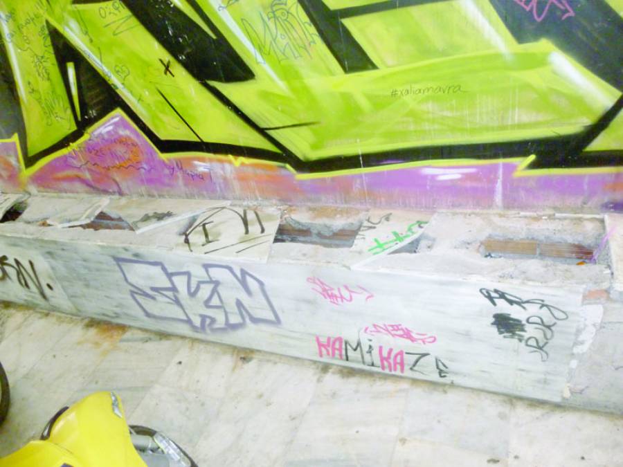 Είναι και οι βανδαλισμοί με τις καταστροφές στα μάρμαρα του καθιστικού, δίπλα από το κυλικείο. Ούτε βομβαρδισμοί στη Συρία να ήταν.