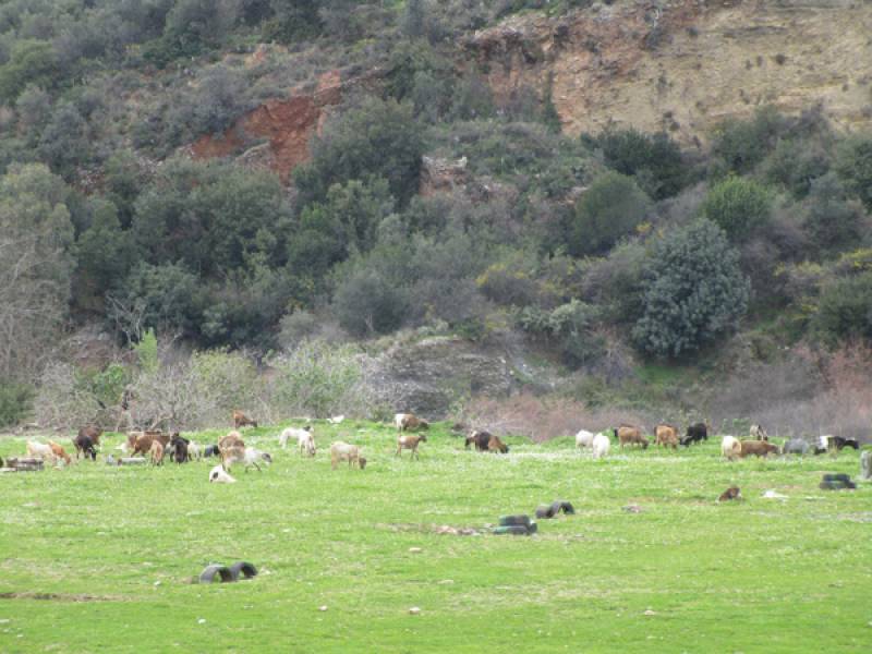 Στο χώρο του Πεδίου Βολής Καλαμάτας κατσίκια βόσκουν στο πράσινο, που έχει δημιουργηθεί.