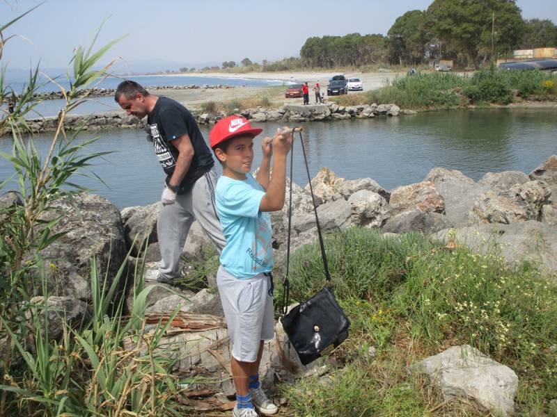 Γυναικεία τσάντα “ψάρεψε” ο Γιώργος, ο γιος του συμβούλου Δημήτρη Φαββατά, στις εκβολές του ποταμού Αρι στη Διασπορά, στον εθελοντικό καθαρισμό που οργάνωσε την Κυριακή η παράταξη “Ανοιχτός δήμος - Ενεργοί πολίτες”.