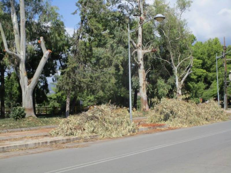 Ενας από τους πιο μεγάλους σωρούς από κλαδέματα βρίσκεται στη Νέδοντος, στο ύψος της Δημοσθένους.