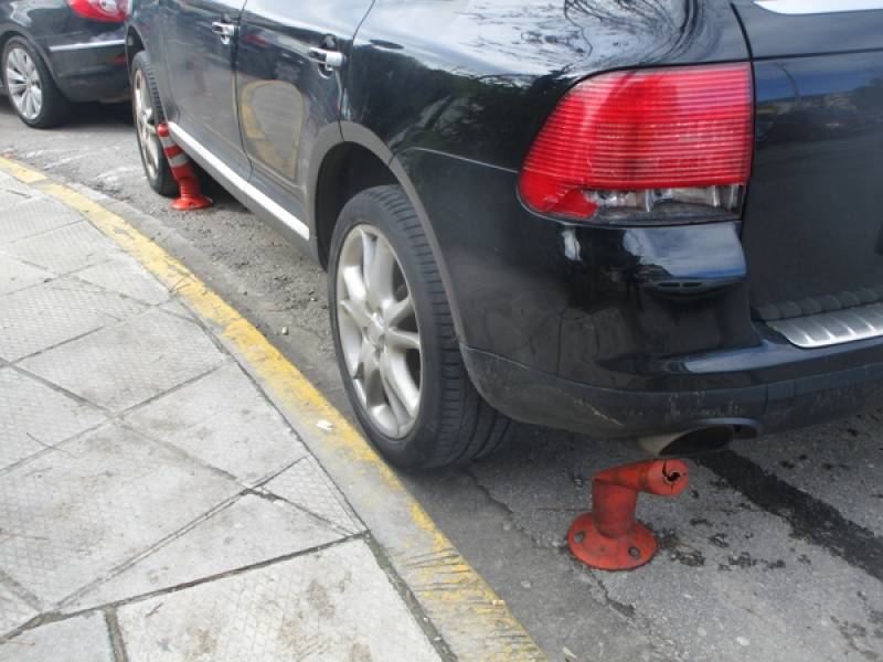 Είναι καθημερινή η εικόνα στο κέντρο της Καλαμάτας με τα αυτοκίνητα που παρκάρουν σε σημεία όπου απαγορεύεται, τσακίζοντας τα πλαστικά κολονάκια που έχει βάλει ο δήμος για να... αποτρέψει το παράνομο παρκάρισμα.