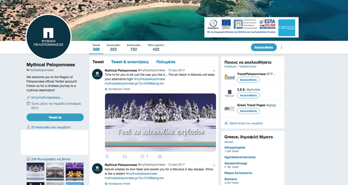 Σε κάθε περίπτωση η απουσία της "Μυθικής Πελοποννήσου" από τα κοινωνικά δίκτυα θα πρέπει να προβληματίσει την επιχειρηματική κοινότητα, αφού πλέον ένας μεγάλος αριθμός ταξιδιωτών επιλέγει προορισμό για τις διακοπές του λαμβάνοντας υπόψη αναρτήσεις στο Facebook, στο Twitter ή βλέποντας βίντεο στο YouTube.