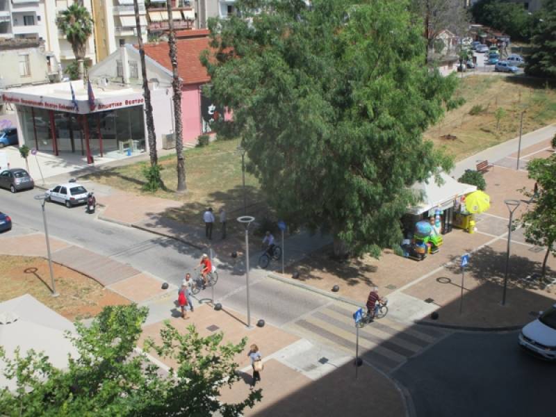Ποδήλατα και στον ποδηλατόδρομο και στον αναπλασμένο χώρο του πεζόδρομου στα “Ουζάκια”.