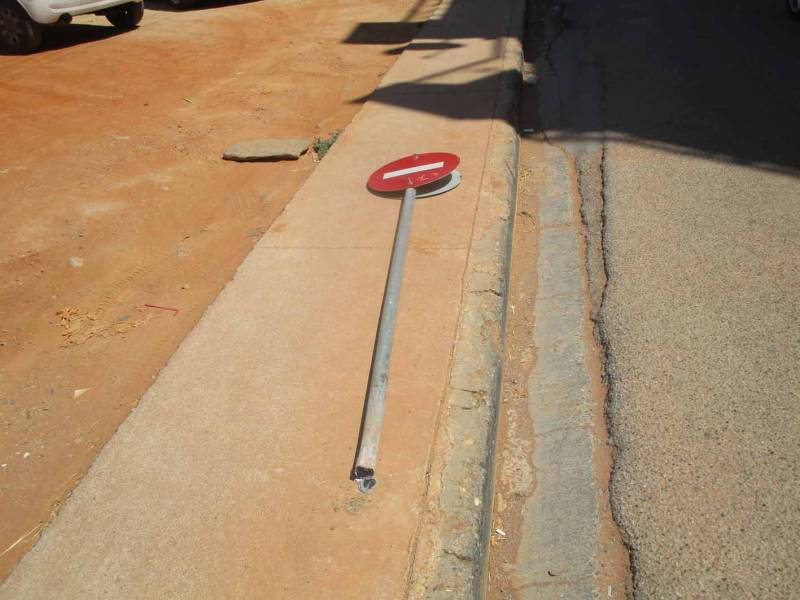 Κάποιος οδηγός δεν την πρόσεξε και βγαίνοντας, προφανώς από το πάρκινγκ, την κατεδάφισε. Είναι αλήθεια, πάντως, ότι αυτό που υποδεικνύει στο τμήμα της Ασκληπιού, μεταξύ Γεωργούλη και Καίσαρη, δεν τηρείται.